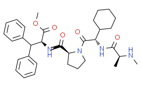 InChI=1S/C33H44N4O5/c1-22(34-2)30(38)35-28(25-18-11-6-12-19-25)32(40)37-21-13-20-26(37)31(39)36-29(33(41)42-3)27(23-14-7-4-8-15-23)24-16-9-5-10-17-24/h4-5,7-10,14-17,22,25-29,34H,6,11-13,18-21H2,1-3H3,(H,35,38)(H,36,39)/t22-,26-,28-,29-/m0/s1