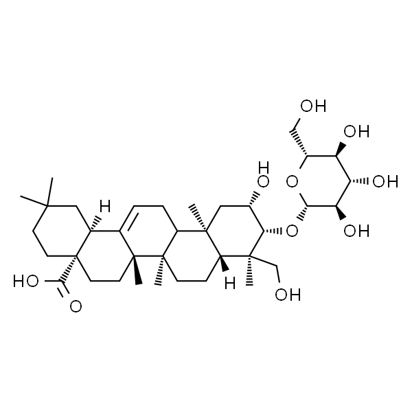 InChI=1S/C36H58O10/c1-31(2)11-13-36(30(43)44)14-12-34(5)19(20(36)15-31)7-8-24-32(3)16-21(39)28(33(4,18-38)23(32)9-10-35(24,34)6)46-29-27(42)26(41)25(40)22(17-37)45-29/h7,20-29,37-42H,8-18H2,1-6H3,(H,43,44)/t20-,21-,22+,23+,24+,25+,26-,27+,28-,29-,32-,33-,34+,35+,36-/m0/s1