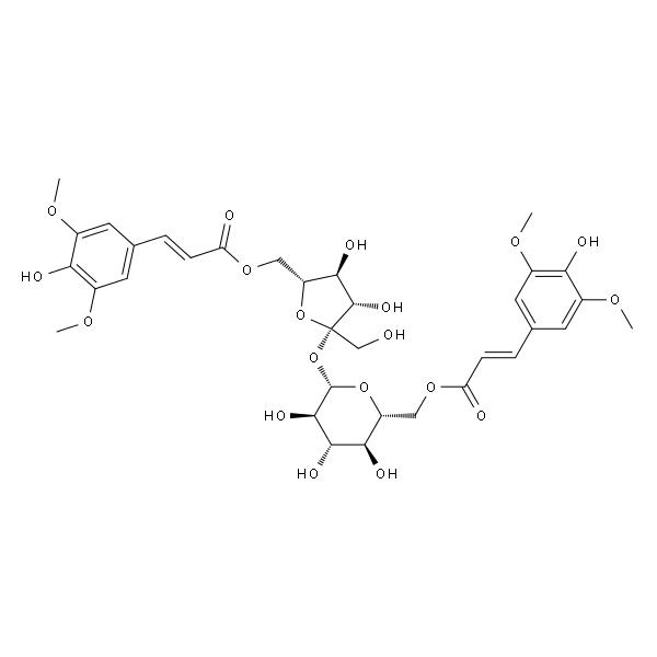 InChI=1S/C34H42O19/c1-45-18-9-16(10-19(46-2)26(18)38)5-7-24(36)49-13-22-28(40)30(42)31(43)33(51-22)53-34(15-35)32(44)29(41)23(52-34)14-50-25(37)8-6-17-11-20(47-3)27(39)21(12-17)48-4/h5-12,22-23,28-33,35,38-44H,13-15H2,1-4H3/b7-5+,8-6+/t22-,23-,28-,29-,30+,31-,32+,33+,34+/m1/s1