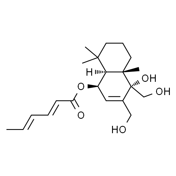 InChI=1S/C21H32O5/c1-5-6-7-9-17(24)26-16-12-15(13-22)21(25,14-23)20(4)11-8-10-19(2,3)18(16)20/h5-7,9,12,16,18,22-23,25H,8,10-11,13-14H2,1-4H3/b6-5+,9-7+/t16-,18+,20+,21-/m1/s1