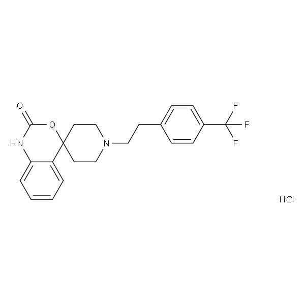 InChI=1S/C21H21F3N2O2.ClH/c22-21(23,24)16-7-5-15(6-8-16)9-12-26-13-10-20(11-14-26)17-3-1-2-4-18(17)25-19(27)28-20;/h1-8H,9-14H2,(H,25,27);1H