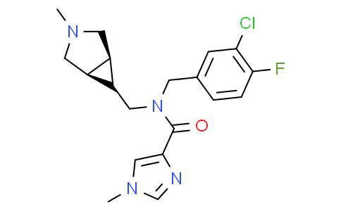 InChI=1S/C19H22ClFN4O/c1-23-7-13-14(8-23)15(13)9-25(19(26)18-10-24(2)11-22-18)6-12-3-4-17(21)16(20)5-12/h3-5,10-11,13-15H,6-9H2,1-2H3/t13-,14+,15?