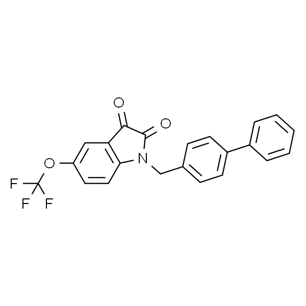 InChI=1S/C22H14F3NO3/c23-22(24,25)29-17-10-11-19-18(12-17)20(27)21(28)26(19)13-14-6-8-16(9-7-14)15-4-2-1-3-5-15/h1-12H,13H2