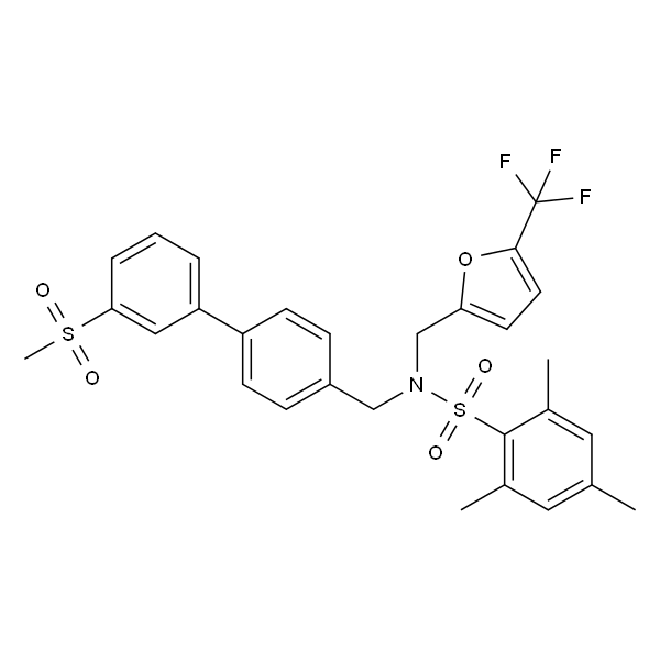 InChI=1S/C29H28F3NO5S2/c1-19-14-20(2)28(21(3)15-19)40(36,37)33(18-25-12-13-27(38-25)29(30,31)32)17-22-8-10-23(11-9-22)24-6-5-7-26(16-24)39(4,34)35/h5-16H,17-18H2,1-4H3