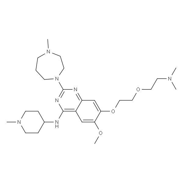 InChI=1S/C27H45N7O3/c1-31(2)15-16-36-17-18-37-25-20-23-22(19-24(25)35-5)26(28-21-7-11-33(4)12-8-21)30-27(29-23)34-10-6-9-32(3)13-14-34/h19-21H,6-18H2,1-5H3,(H,28,29,30)