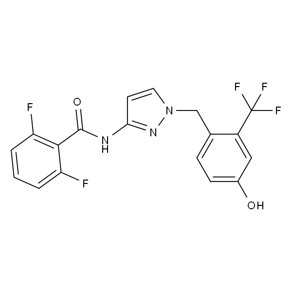InChI=1S/C18H12F5N3O2/c19-13-2-1-3-14(20)16(13)17(28)24-15-6-7-26(25-15)9-10-4-5-11(27)8-12(10)18(21,22)23/h1-8,27H,9H2,(H,24,25,28)