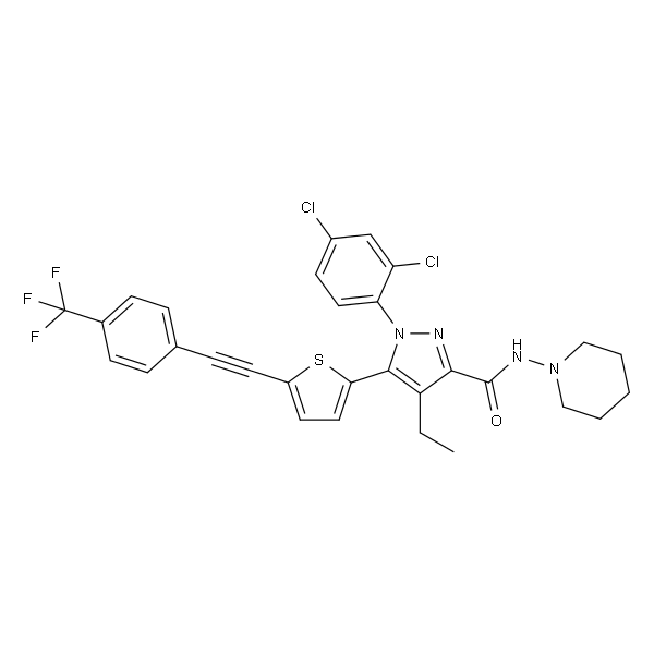 InChI=1S/C30H25Cl2F3N4OS/c1-2-23-27(29(40)37-38-16-4-3-5-17-38)36-39(25-14-11-21(31)18-24(25)32)28(23)26-15-13-22(41-26)12-8-19-6-9-20(10-7-19)30(33,34)35/h6-7,9-11,13-15,18H,2-5,16-17H2,1H3,(H,37,40)