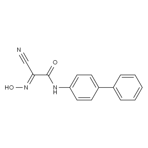 InChI=1S/C15H11N3O2/c16-10-14(18-20)15(19)17-13-8-6-12(7-9-13)11-4-2-1-3-5-11/h1-9,20H,(H,17,19)/b18-14+