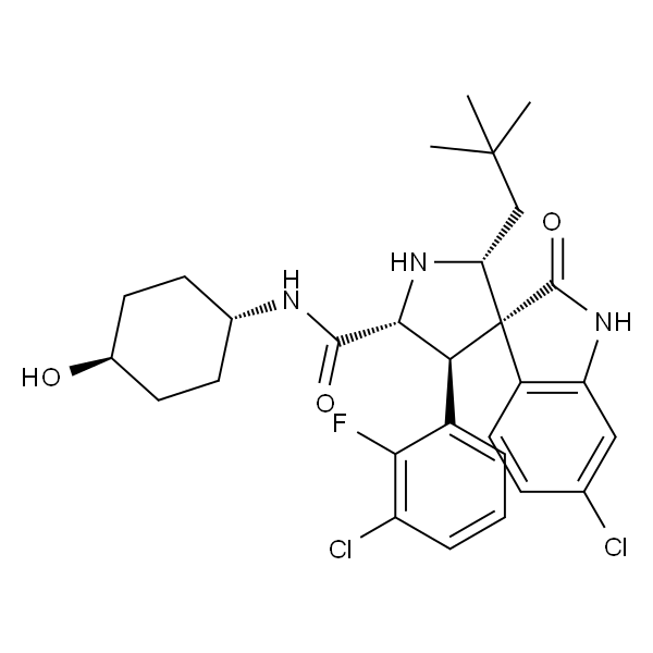 InChI=1S/C29H34Cl2FN3O3/c1-28(2,3)14-22-29(19-12-7-15(30)13-21(19)34-27(29)38)23(18-5-4-6-20(31)24(18)32)25(35-22)26(37)33-16-8-10-17(36)11-9-16/h4-7,12-13,16-17,22-23,25,35-36H,8-11,14H2,1-3H3,(H,33,37)(H,34,38)/t16?,17?,22-,23+,25-,29+/m1/s1