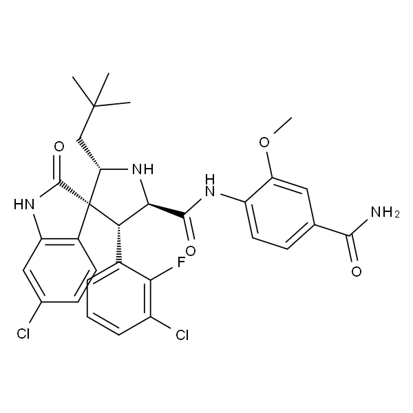 InChI=1S/C31H31Cl2FN4O4/c1-30(2,3)14-23-31(18-10-9-16(32)13-21(18)37-29(31)41)24(17-6-5-7-19(33)25(17)34)26(38-23)28(40)36-20-11-8-15(27(35)39)12-22(20)42-4/h5-13,23-24,26,38H,14H2,1-4H3,(H2,35,39)(H,36,40)(H,37,41)/t23-,24-,26+,31+/m0/s1