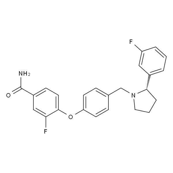 InChI=1S/C24H22F2N2O2/c25-19-4-1-3-17(13-19)22-5-2-12-28(22)15-16-6-9-20(10-7-16)30-23-11-8-18(24(27)29)14-21(23)26/h1,3-4,6-11,13-14,22H,2,5,12,15H2,(H2,27,29)/t22-/m0/s1