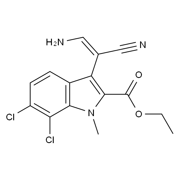 InChI=1S/C15H13Cl2N3O2/c1-3-22-15(21)14-11(8(6-18)7-19)9-4-5-10(16)12(17)13(9)20(14)2/h4-6H,3,18H2,1-2H3/b8-6-