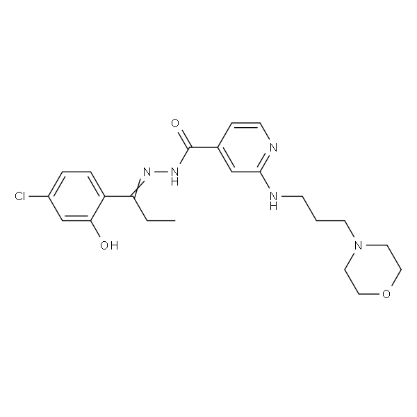 InChI=1S/C22H28ClN5O3/c1-2-19(18-5-4-17(23)15-20(18)29)26-27-22(30)16-6-8-25-21(14-16)24-7-3-9-28-10-12-31-13-11-28/h4-6,8,14-15,29H,2-3,7,9-13H2,1H3,(H,24,25)(H,27,30)/b26-19+