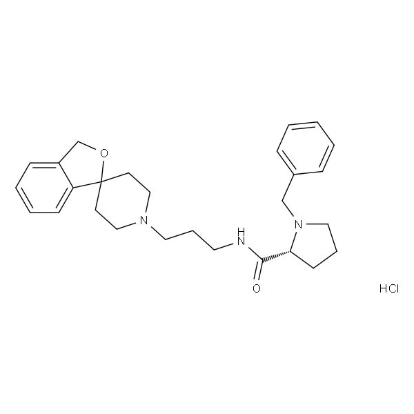 InChI=1S/C27H35N3O2.2ClH/c31-26(25-12-6-17-30(25)20-22-8-2-1-3-9-22)28-15-7-16-29-18-13-27(14-19-29)24-11-5-4-10-23(24)21-32-27;;/h1-5,8-11,25H,6-7,12-21H2,(H,28,31);2*1H/t25-;;/m1../s1
