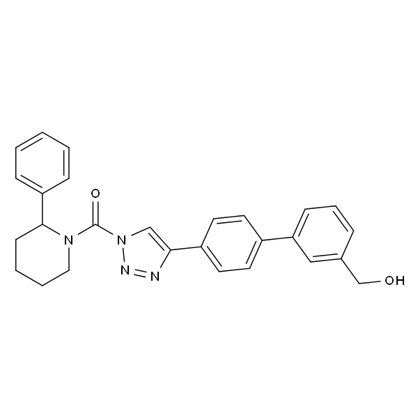 InChI=1S/C27H26N4O2/c32-19-20-7-6-10-24(17-20)21-12-14-22(15-13-21)25-18-31(29-28-25)27(33)30-16-5-4-11-26(30)23-8-2-1-3-9-23/h1-3,6-10,12-15,17-18,26,32H,4-5,11,16,19H2