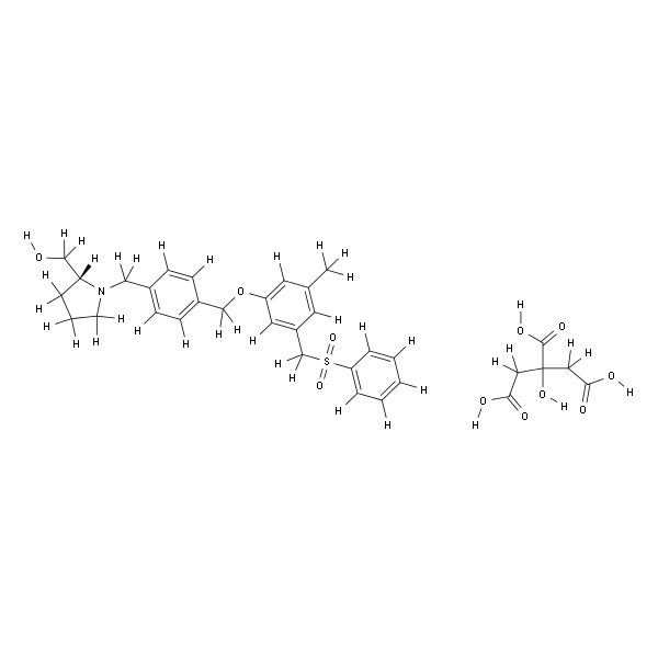 InChI=1S/C27H31NO4S.C6H8O7/c1-21-14-24(20-33(30,31)27-7-3-2-4-8-27)16-26(15-21)32-19-23-11-9-22(10-12-23)17-28-13-5-6-25(28)18-29;7-3(8)1-6(13,5(11)12)2-4(9)10/h2-4,7-12,14-16,25,29H,5-6,13,17-20H2,1H3;13H,1-2H2,(H,7,8)(H,9,10)(H,11,12)/t25-;/m1./s1