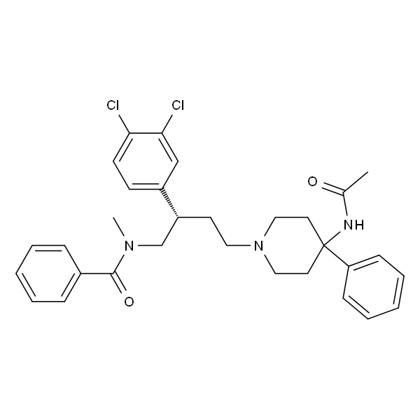 InChI=1S/C31H35Cl2N3O2/c1-23(37)34-31(27-11-7-4-8-12-27)16-19-36(20-17-31)18-15-26(25-13-14-28(32)29(33)21-25)22-35(2)30(38)24-9-5-3-6-10-24/h3-14,21,26H,15-20,22H2,1-2H3,(H,34,37)/t26-/m1/s1