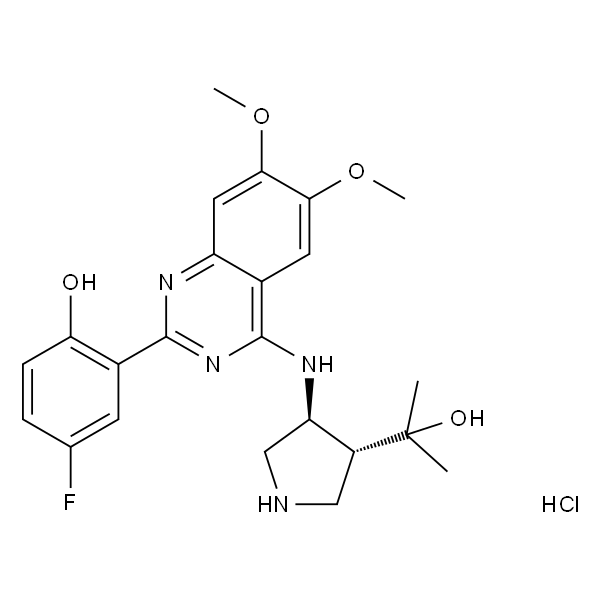 InChI=1S/C23H27FN4O4.ClH/c1-23(2,30)15-10-25-11-17(15)27-21-13-8-19(31-3)20(32-4)9-16(13)26-22(28-21)14-7-12(24)5-6-18(14)29;/h5-9,15,17,25,29-30H,10-11H2,1-4H3,(H,26,27,28);1H/t15-,17-;/m1./s1