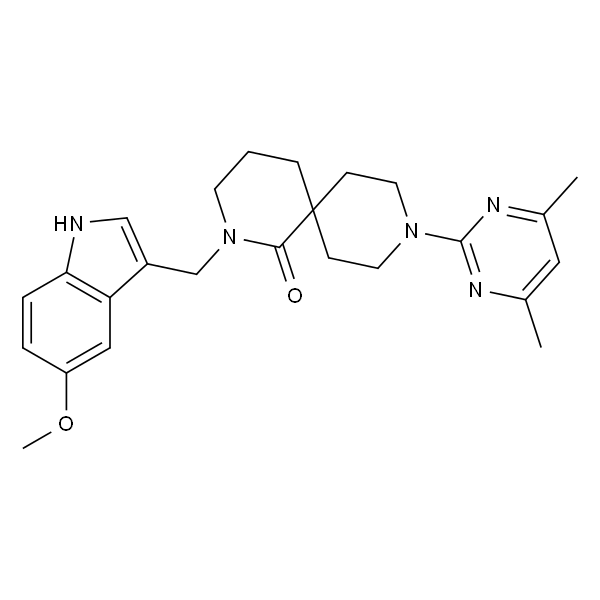 InChI=1S/C25H31N5O2/c1-17-13-18(2)28-24(27-17)29-11-8-25(9-12-29)7-4-10-30(23(25)31)16-19-15-26-22-6-5-20(32-3)14-21(19)22/h5-6,13-15,26H,4,7-12,16H2,1-3H3