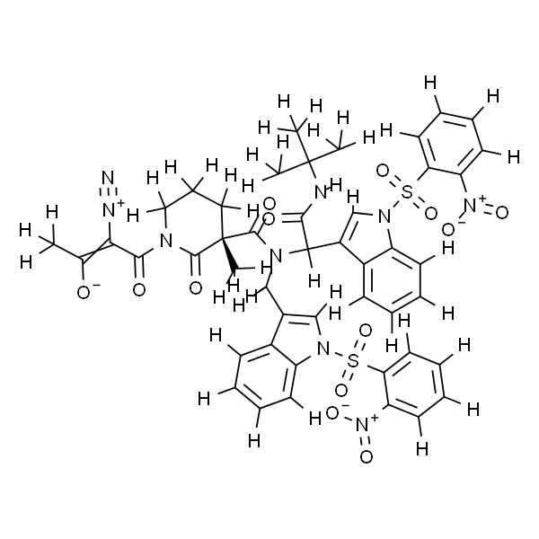 InChI=1S/C46H43N9O13S2/c1-28(56)39(49-47)42(58)50-24-14-23-46(5,43(50)59)44(60)51(25-29-26-52(33-17-8-6-15-30(29)33)69(65,66)37-21-12-10-19-35(37)54(61)62)40(41(57)48-45(2,3)4)32-27-53(34-18-9-7-16-31(32)34)70(67,68)38-22-13-11-20-36(38)55(63)64/h6-13,15-22,26-27,40H,14,23-25H2,1-5H3,(H,48,57)/t40?,46-/m0/s1