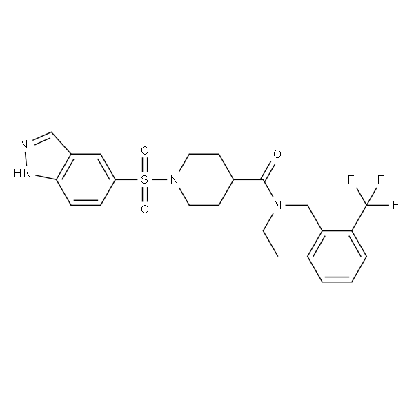 InChI=1S/C23H25F3N4O3S/c1-2-29(15-17-5-3-4-6-20(17)23(24,25)26)22(31)16-9-11-30(12-10-16)34(32,33)19-7-8-21-18(13-19)14-27-28-21/h3-8,13-14,16H,2,9-12,15H2,1H3,(H,27,28)