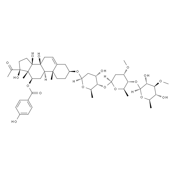 InChI=1S/C48H70O18/c1-23-37(52)41(59-8)38(53)43(62-23)66-40-25(3)61-36(21-32(40)58-7)65-39-24(2)60-35(20-31(39)51)63-30-14-15-44(5)28(19-30)13-16-47(56)33(44)22-34(64-42(54)27-9-11-29(50)12-10-27)45(6)46(55,26(4)49)17-18-48(45,47)57/h9-13,23-25,30-41,43,50-53,55-57H,14-22H2,1-8H3/t23-,24-,25-,30+,31+,32+,33-,34-,35+,36+,37-,38-,39-,40-,41+,43+,44+,45-,46-,47+,48-/m1/s1