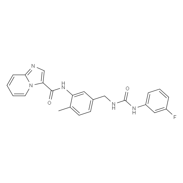 InChI=1S/C23H20FN5O2/c1-15-8-9-16(13-26-23(31)27-18-6-4-5-17(24)12-18)11-19(15)28-22(30)20-14-25-21-7-2-3-10-29(20)21/h2-12,14H,13H2,1H3,(H,28,30)(H2,26,27,31)