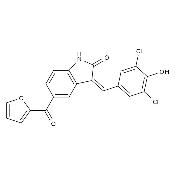 InChI=1S/C20H11Cl2NO4/c21-14-7-10(8-15(22)19(14)25)6-13-12-9-11(3-4-16(12)23-20(13)26)18(24)17-2-1-5-27-17/h1-9,25H,(H,23,26)/b13-6-