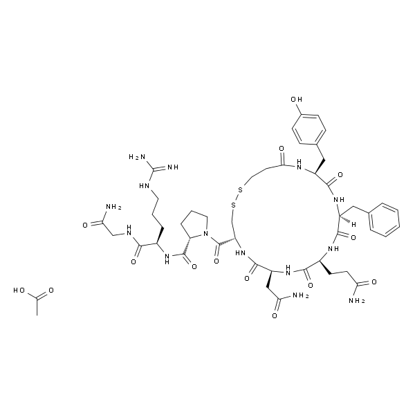 InChI=1S/C46H64N14O12S2.2C2H4O2/c47-35(62)15-14-29-40(67)58-32(22-36(48)63)43(70)59-33(45(72)60-18-5-9-34(60)44(71)56-28(8-4-17-52-46(50)51)39(66)53-23-37(49)64)24-74-73-19-16-38(65)54-30(21-26-10-12-27(61)13-11-26)41(68)57-31(42(69)55-29)20-25-6-2-1-3-7-25;2*1-2(3)4/h1-3,6-7,10-13,28-34,61H,4-5,8-9,14-24H2,(H2,47,62)(H2,48,63)(H2,49,64)(H,53,66)(H,54,65)(H,55,69)(H,56,71)(H,57,68)(H,58,67)(H,59,70)(H4,50,51,52);2*1H3,(H,3,4)