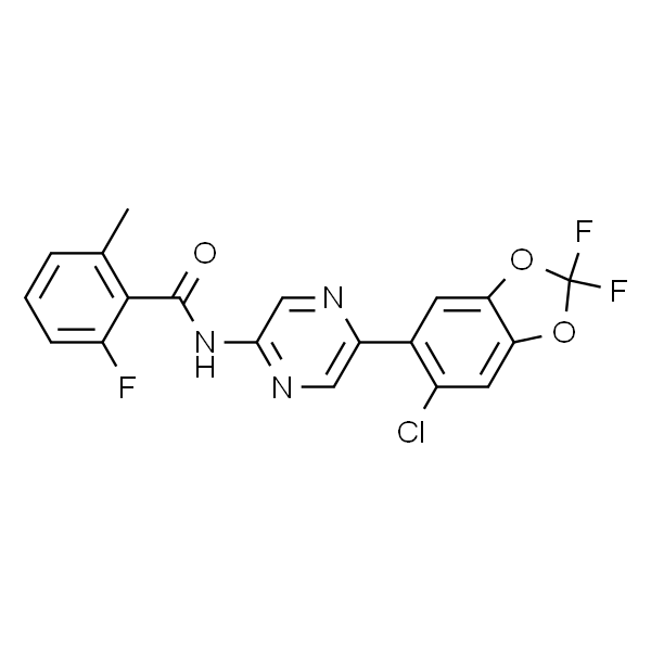 InChI=1S/C19H11ClF3N3O3/c1-9-3-2-4-12(21)17(9)18(27)26-16-8-24-13(7-25-16)10-5-14-15(6-11(10)20)29-19(22,23)28-14/h2-8H,1H3,(H,25,26,27)