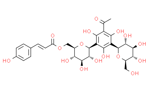 InChI=1S/C29H34O16/c1-10(31)16-21(36)17(28-26(41)24(39)19(34)13(8-30)44-28)23(38)18(22(16)37)29-27(42)25(40)20(35)14(45-29)9-43-15(33)7-4-11-2-5-12(32)6-3-11/h2-7,13-14,19-20,24-30,32,34-42H,8-9H2,1H3/b7-4+/t13-,14-,19-,20-,24+,25+,26-,27-,28+,29+/m1/s1