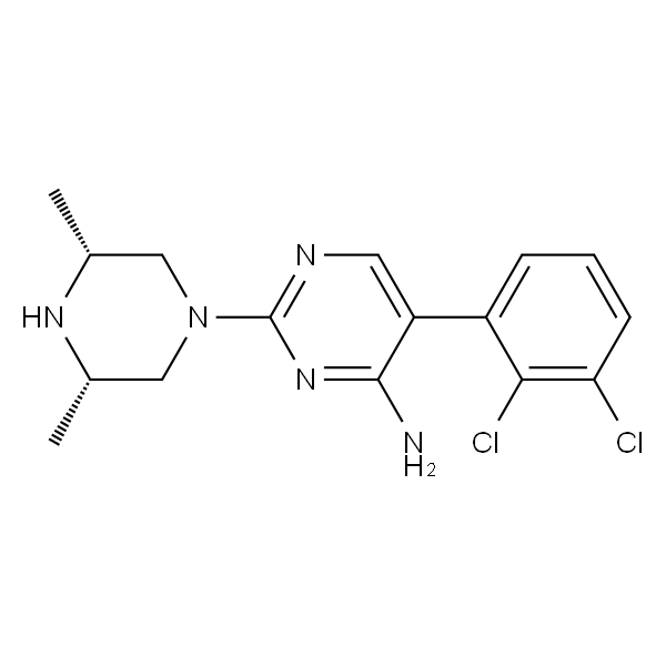 InChI=1S/C16H19Cl2N5/c1-9-7-23(8-10(2)21-9)16-20-6-12(15(19)22-16)11-4-3-5-13(17)14(11)18/h3-6,9-10,21H,7-8H2,1-2H3,(H2,19,20,22)/t9-,10+