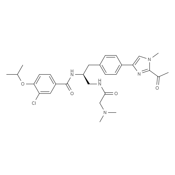 InChI=1S/C29H36ClN5O4/c1-18(2)39-26-12-11-22(14-24(26)30)29(38)32-23(15-31-27(37)17-34(4)5)13-20-7-9-21(10-8-20)25-16-35(6)28(33-25)19(3)36/h7-12,14,16,18,23H,13,15,17H2,1-6H3,(H,31,37)(H,32,38)/t23-/m0/s1