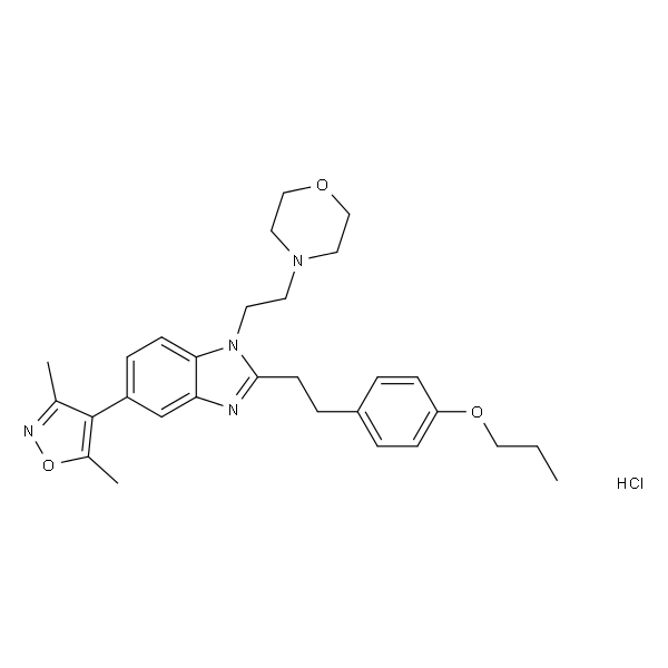 InChI=1S/C29H36N4O3.ClH/c1-4-17-35-25-9-5-23(6-10-25)7-12-28-30-26-20-24(29-21(2)31-36-22(29)3)8-11-27(26)33(28)14-13-32-15-18-34-19-16-32;/h5-6,8-11,20H,4,7,12-19H2,1-3H3;1H