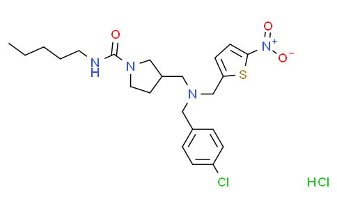 InChI=1S/C23H31ClN4O3S.ClH/c1-2-3-4-12-25-23(29)27-13-11-19(16-27)15-26(14-18-5-7-20(24)8-6-18)17-21-9-10-22(32-21)28(30)31;/h5-10,19H,2-4,11-17H2,1H3,(H,25,29);1H