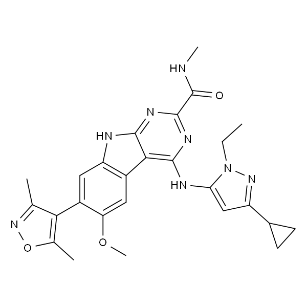 InChI=1S/C26H28N8O3/c1-6-34-20(11-17(32-34)14-7-8-14)29-24-22-15-10-19(36-5)16(21-12(2)33-37-13(21)3)9-18(15)28-23(22)30-25(31-24)26(35)27-4/h9-11,14H,6-8H2,1-5H3,(H,27,35)(H2,28,29,30,31)
