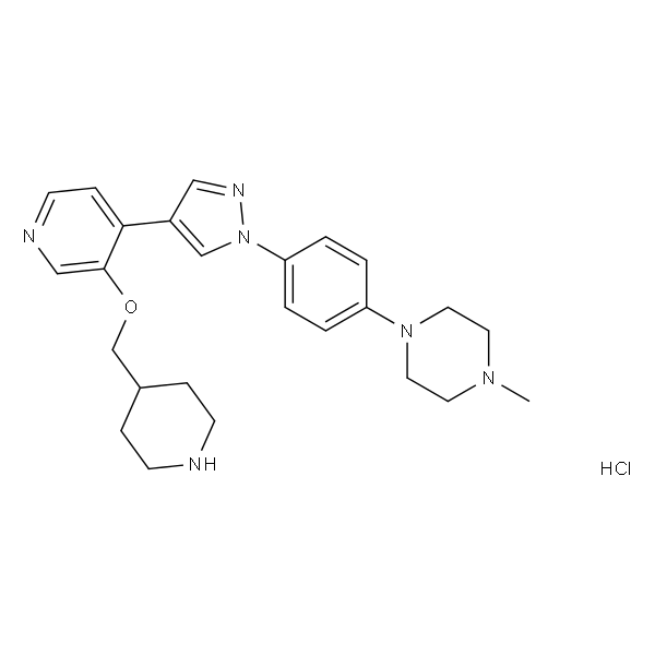 InChI=1S/C25H32N6O.ClH/c1-29-12-14-30(15-13-29)22-2-4-23(5-3-22)31-18-21(16-28-31)24-8-11-27-17-25(24)32-19-20-6-9-26-10-7-20;/h2-5,8,11,16-18,20,26H,6-7,9-10,12-15,19H2,1H3;1H