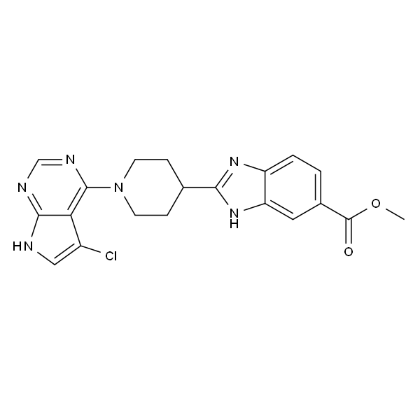 InChI=1S/C20H19ClN6O2/c1-29-20(28)12-2-3-14-15(8-12)26-17(25-14)11-4-6-27(7-5-11)19-16-13(21)9-22-18(16)23-10-24-19/h2-3,8-11H,4-7H2,1H3,(H,25,26)(H,22,23,24)