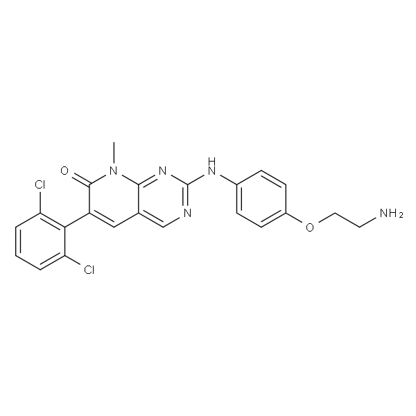InChI=1S/C22H19Cl2N5O2/c1-29-20-13(11-16(21(29)30)19-17(23)3-2-4-18(19)24)12-26-22(28-20)27-14-5-7-15(8-6-14)31-10-9-25/h2-8,11-12H,9-10,25H2,1H3,(H,26,27,28)