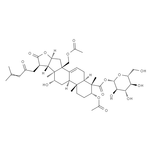 InChI=1S/C40H56O15/c1-18(2)12-21(44)13-22-30-25(53-34(22)49)15-40(17-51-19(3)42)23-8-9-27-37(5,24(23)14-28(45)39(30,40)7)11-10-29(52-20(4)43)38(27,6)36(50)55-35-33(48)32(47)31(46)26(16-41)54-35/h8,12,22,24-33,35,41,45-48H,9-11,13-17H2,1-7H3/t22-,24+,25+,26-,27-,28+,29-,30-,31-,32+,33-,35+,37-,38+,39+,40+/m1/s1