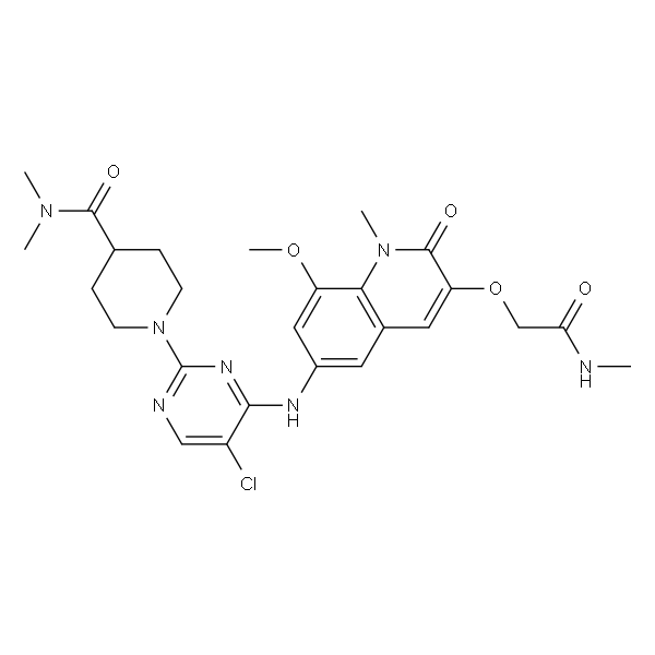 InChI=1S/C26H32ClN7O5/c1-28-21(35)14-39-20-11-16-10-17(12-19(38-5)22(16)33(4)25(20)37)30-23-18(27)13-29-26(31-23)34-8-6-15(7-9-34)24(36)32(2)3/h10-13,15H,6-9,14H2,1-5H3,(H,28,35)(H,29,30,31)