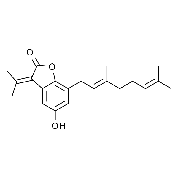 InChI=1S/C21H26O3/c1-13(2)7-6-8-15(5)9-10-16-11-17(22)12-18-19(14(3)4)21(23)24-20(16)18/h7,9,11-12,22H,6,8,10H2,1-5H3/b15-9+