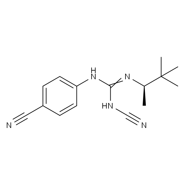 InChI=1S/C15H19N5/c1-11(15(2,3)4)19-14(18-10-17)20-13-7-5-12(9-16)6-8-13/h5-8,11H,1-4H3,(H2,18,19,20)/t11-/m1/s1
