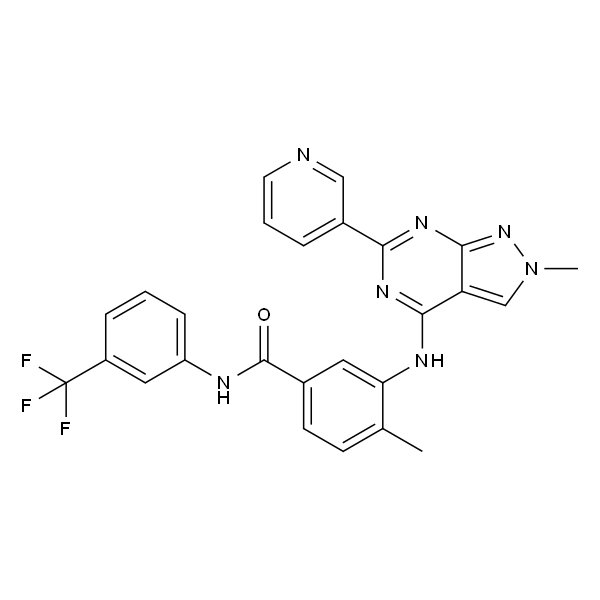 InChI=1S/C26H20F3N7O/c1-15-8-9-16(25(37)31-19-7-3-6-18(12-19)26(27,28)29)11-21(15)32-23-20-14-36(2)35-24(20)34-22(33-23)17-5-4-10-30-13-17/h3-14H,1-2H3,(H,31,37)(H,32,33,34,35)