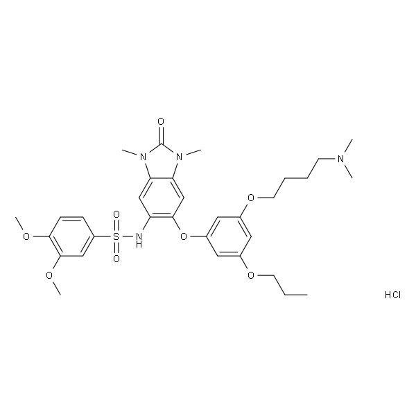 InChI=1S/C32H42N4O8S.ClH/c1-8-14-42-22-16-23(43-15-10-9-13-34(2)3)18-24(17-22)44-30-21-28-27(35(4)32(37)36(28)5)20-26(30)33-45(38,39)25-11-12-29(40-6)31(19-25)41-7;/h11-12,16-21,33H,8-10,13-15H2,1-7H3;1H