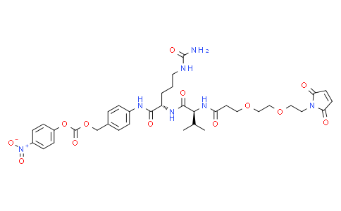 InChI=1S/C36H45N7O13/c1-23(2)32(41-29(44)15-18-53-20-21-54-19-17-42-30(45)13-14-31(42)46)34(48)40-28(4-3-16-38-35(37)49)33(47)39-25-7-5-24(6-8-25)22-55-36(50)56-27-11-9-26(10-12-27)43(51)52/h5-14,23,28,32H,3-4,15-22H2,1-2H3,(H,39,47)(H,40,48)(H,41,44)(H3,37,38,49)/t28-,32-/m0/s1