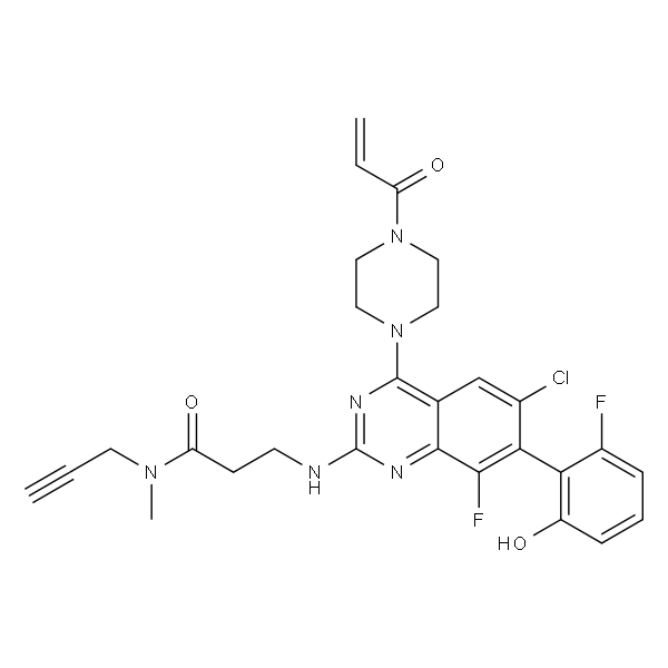 InChI=1S/C28H27ClF2N6O3/c1-4-11-35(3)22(40)9-10-32-28-33-26-17(27(34-28)37-14-12-36(13-15-37)21(39)5-2)16-18(29)23(25(26)31)24-19(30)7-6-8-20(24)38/h1,5-8,16,38H,2,9-15H2,3H3,(H,32,33,34)