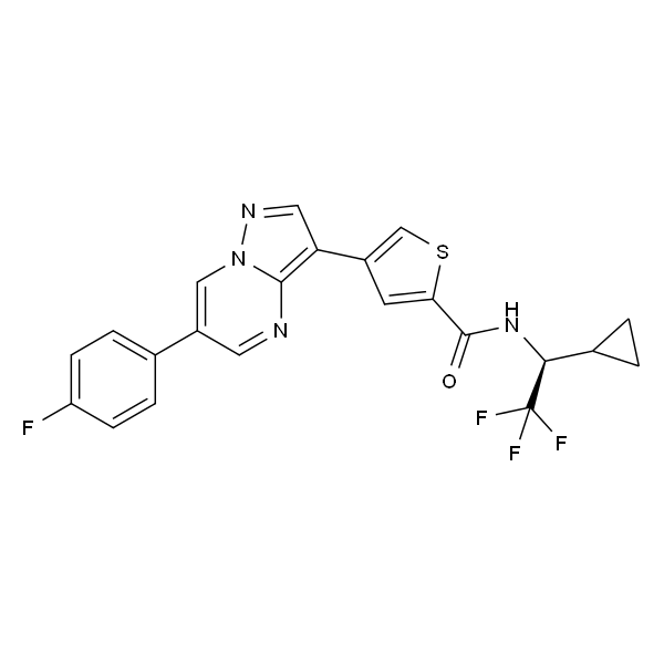 InChI=1S/C22H16F4N4OS/c23-16-5-3-12(4-6-16)15-8-27-20-17(9-28-30(20)10-15)14-7-18(32-11-14)21(31)29-19(13-1-2-13)22(24,25)26/h3-11,13,19H,1-2H2,(H,29,31)/t19-/m0/s1