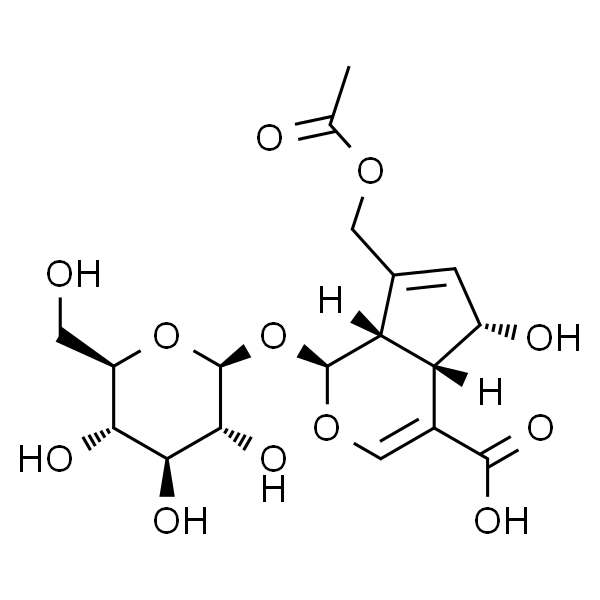 InChI=1S/C18H24O12/c1-6(20)27-4-7-2-9(21)12-8(16(25)26)5-28-17(11(7)12)30-18-15(24)14(23)13(22)10(3-19)29-18/h2,5,9-15,17-19,21-24H,3-4H2,1H3,(H,25,26)/t9-,10+,11+,12-,13+,14-,15+,17-,18-/m0/s1