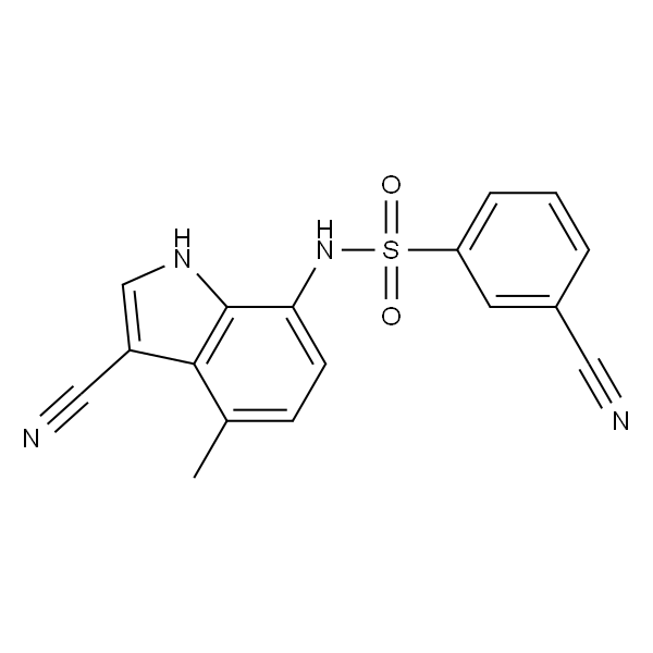 InChI=1S/C17H12N4O2S/c1-11-5-6-15(17-16(11)13(9-19)10-20-17)21-24(22,23)14-4-2-3-12(7-14)8-18/h2-7,10,20-21H,1H3